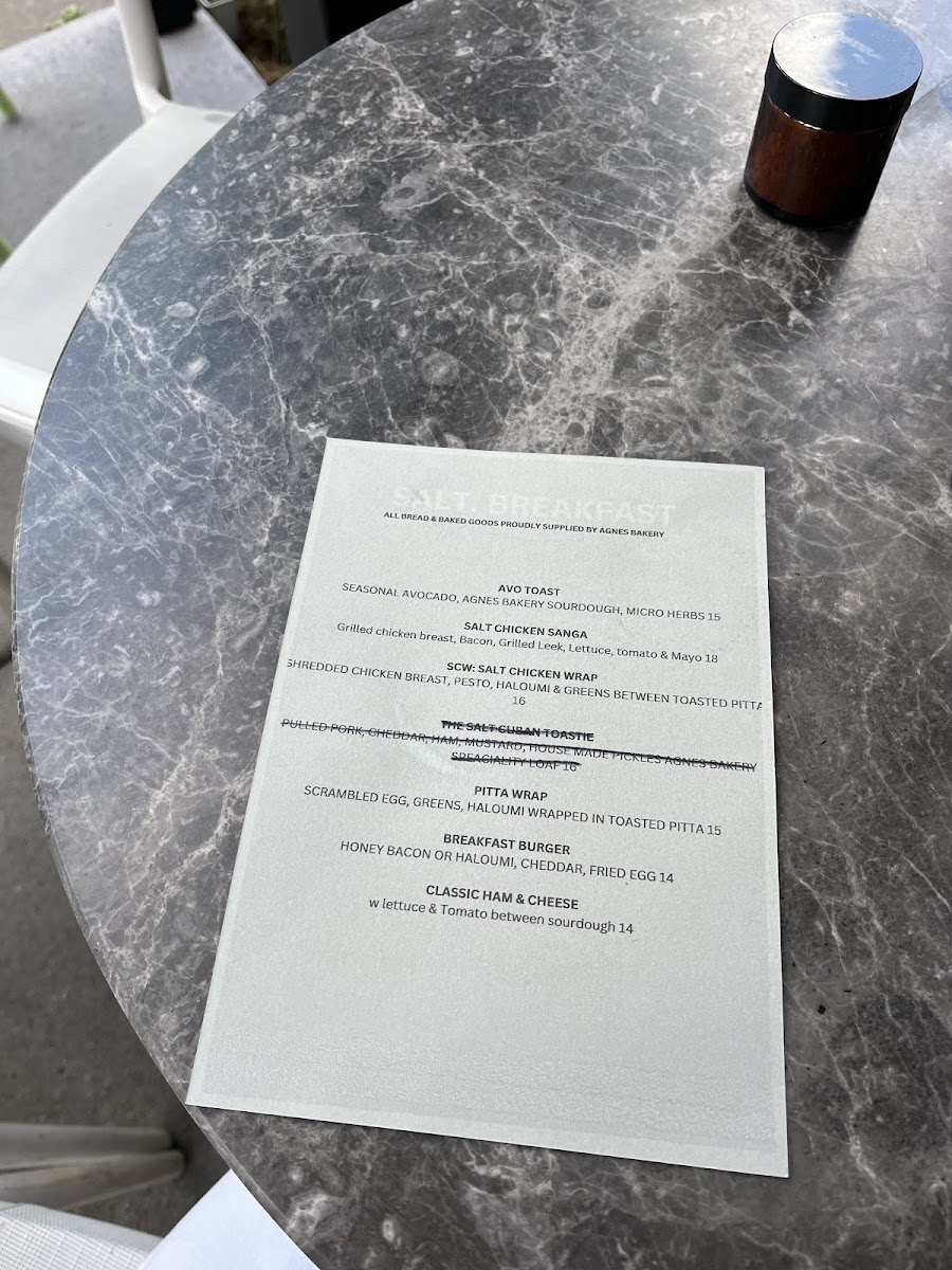 Salt Coffee Roasters Menu